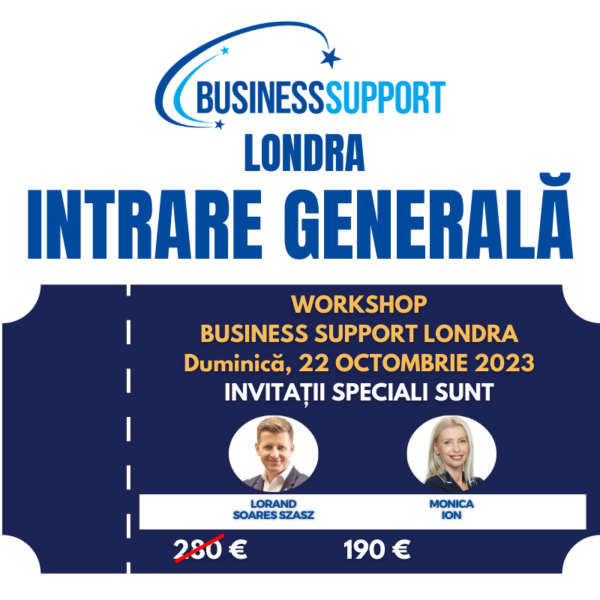 WORKSHOP BUSINESS SUPPORT LONDRA va avea loc duminică, în data de 22 octombrie 2023 la Londra, la Hotel Delta by Marriott Heathrow Windsor, Ditton Rd, Langley, Slough SL3 8PT, Regatul Unit, începând cu ora 10:00.